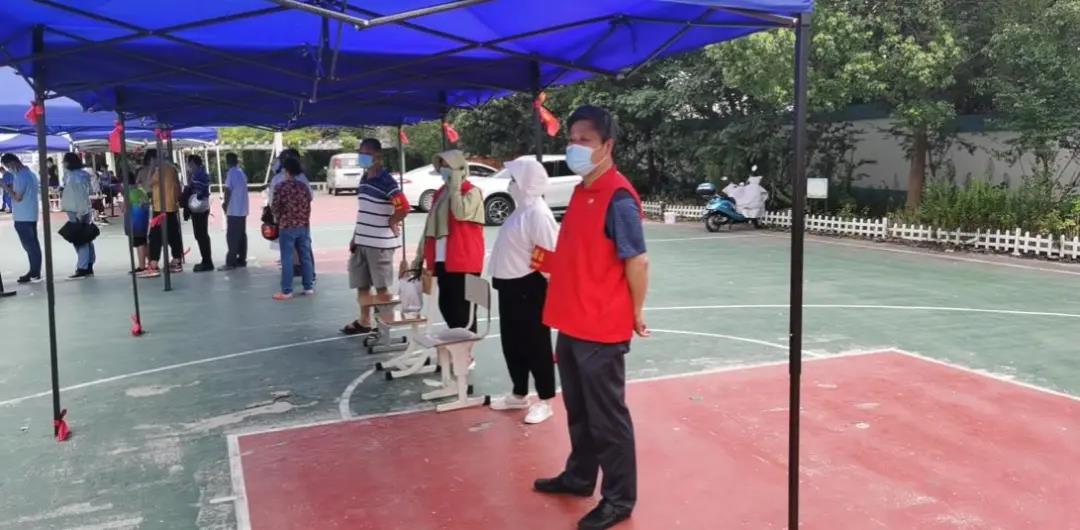 不到一小時,鼓樓區(qū)市場監(jiān)管局黨員志愿者隊伍已集結(jié)完畢。即將退休的老黨員第一個趕到社區(qū),來不及換上紅馬甲便投入戰(zhàn)斗。隨著夜幕降臨,排隊的人慢慢多了起來,黨員志愿者們一直守在路口,不停勸導(dǎo)群眾,沒顧得上喝一口水。