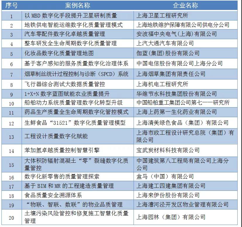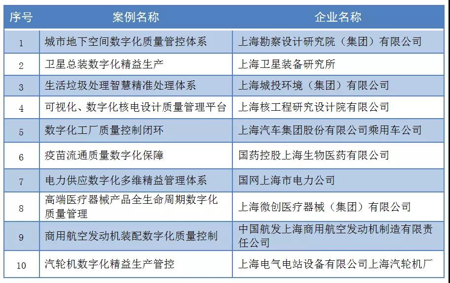 2021年度上海市企業(yè)質(zhì)量管理領(lǐng)域數(shù)字化轉(zhuǎn)型典型案例入選名單