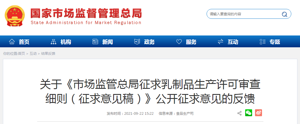關(guān)于《市場監(jiān)管總局征求乳制品生產(chǎn)許可審查細(xì)則(征求意見稿)》公開征求意見的反饋