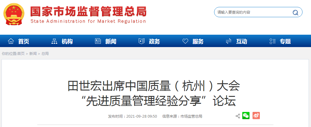 日前,中國質(zhì)量(杭州)大會“先進(jìn)質(zhì)量管理經(jīng)驗分享”論壇在浙江杭州國際博覽中心舉行。市場監(jiān)管總局副局長、國家標(biāo)準(zhǔn)委主任田世宏出席論壇并致辭。