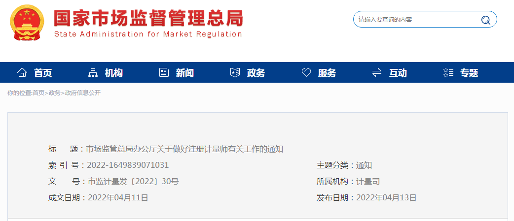 市場監(jiān)管總局辦公廳關(guān)于做好注冊(cè)計(jì)量師注冊(cè)有關(guān)工作的通知