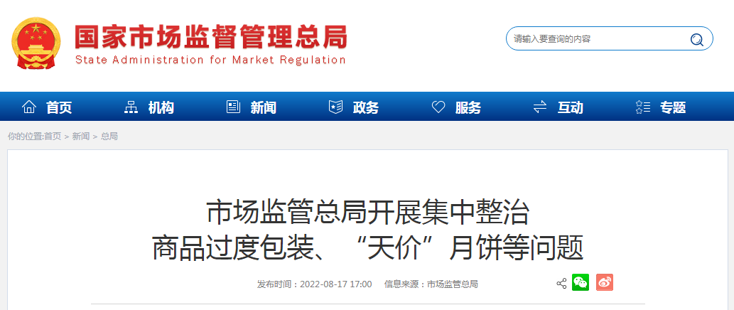 2022年中秋、國慶將至,為深入貫徹落實黨中央、國務(wù)院和中央紀(jì)委國家監(jiān)委有關(guān)決策部署,市場監(jiān)管總局近日印發(fā)《市場監(jiān)管總局關(guān)于集中整治商品過度包裝、“天價”月餅和蟹卡蟹券等問題的通知》(以下簡稱《通知》),在全國范圍內(nèi)開展為期2個月的集中整治。