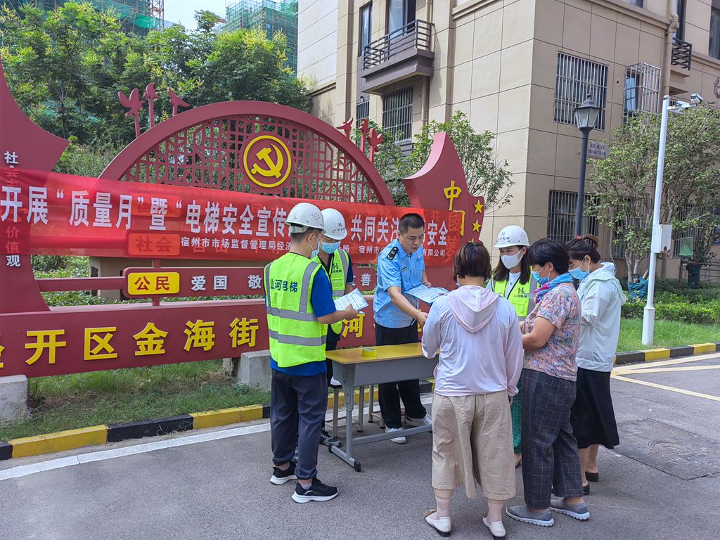中國質(zhì)量新聞網(wǎng)訊 為深入貫徹落實《中華人民共和國特種設(shè)備安全法》《特種設(shè)備安全監(jiān)察條例》,切實加強電梯安全宣傳教育工作,進一步強化責(zé)任意識、安全意識,安徽省宿州市市場監(jiān)督管理局經(jīng)濟技術(shù)開發(fā)區(qū)分局在2022年“質(zhì)量月”活動中,以“安心乘梯守護行動”為主題,積極開展宣傳活動。