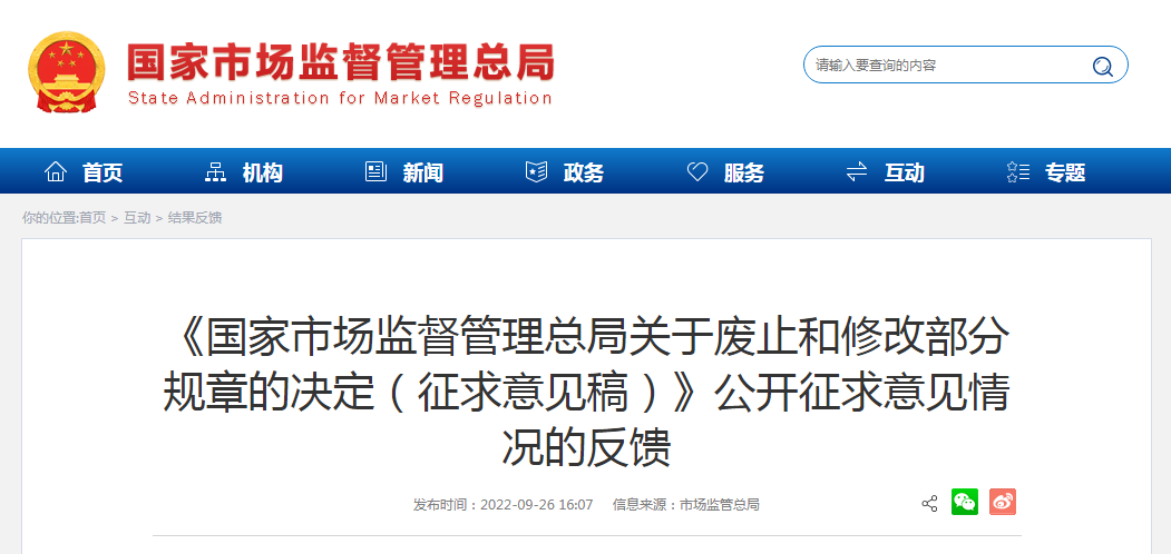 為了進一步推進簡政放權、放管結合、優(yōu)化服務改革,減少規(guī)章設定的不合理罰款事項,加強部門規(guī)章的系統(tǒng)性、規(guī)范性、協(xié)調(diào)性,國家市場監(jiān)督管理總局研究起草了《國家市場監(jiān)督管理總局關于廢止和修改部分規(guī)章的決定(征求意見稿)》,于2022年8月19日至9月18日向社會公眾公開征求意見。征求意見期間,收到11條有效建議,主要涉及《有機產(chǎn)品認證管理辦法》《強制性認證產(chǎn)品管理規(guī)定》等。市場監(jiān)管總局對上述建議進行研究,考慮到本次修改和廢止主要為落實取消和調(diào)整部分罰款事項,涉及整體制度設計的內(nèi)容將在有關規(guī)章整體修訂中予以研究吸收。