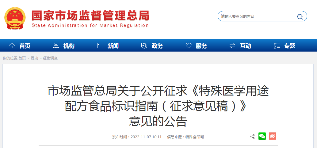 市場監(jiān)管總局關于公開征求《特殊醫(yī)學用途配方食品標識指南(征求意見稿)》意見的公告