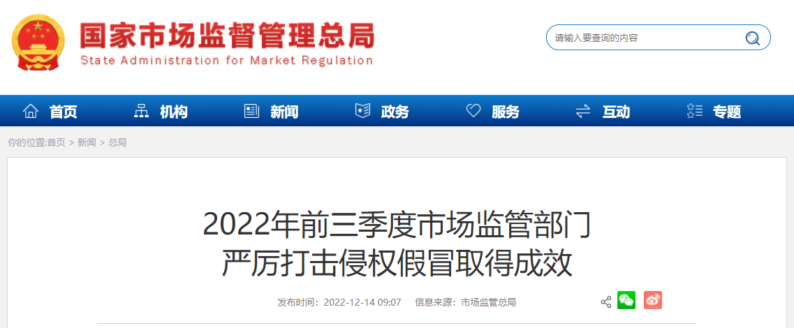 2022年前三季度,市場監(jiān)管部門組織開展知識(shí)產(chǎn)權(quán)執(zhí)法等專項(xiàng)行動(dòng),進(jìn)一步加強(qiáng)重點(diǎn)領(lǐng)域、重點(diǎn)商品、重點(diǎn)市場治理,積極發(fā)揮行政執(zhí)法震懾力,切實(shí)保護(hù)權(quán)利人和消費(fèi)者合法權(quán)益,維護(hù)市場經(jīng)濟(jì)秩序,營造良好營商環(huán)境。1—9月,各類專項(xiàng)行動(dòng)共查處相關(guān)案件約36萬件。其中,商標(biāo)侵權(quán)、假冒專利案件近3萬件,針對(duì)侵權(quán)假冒高發(fā)多發(fā)的重點(diǎn)實(shí)體市場開展執(zhí)法行動(dòng)3.2萬人次。