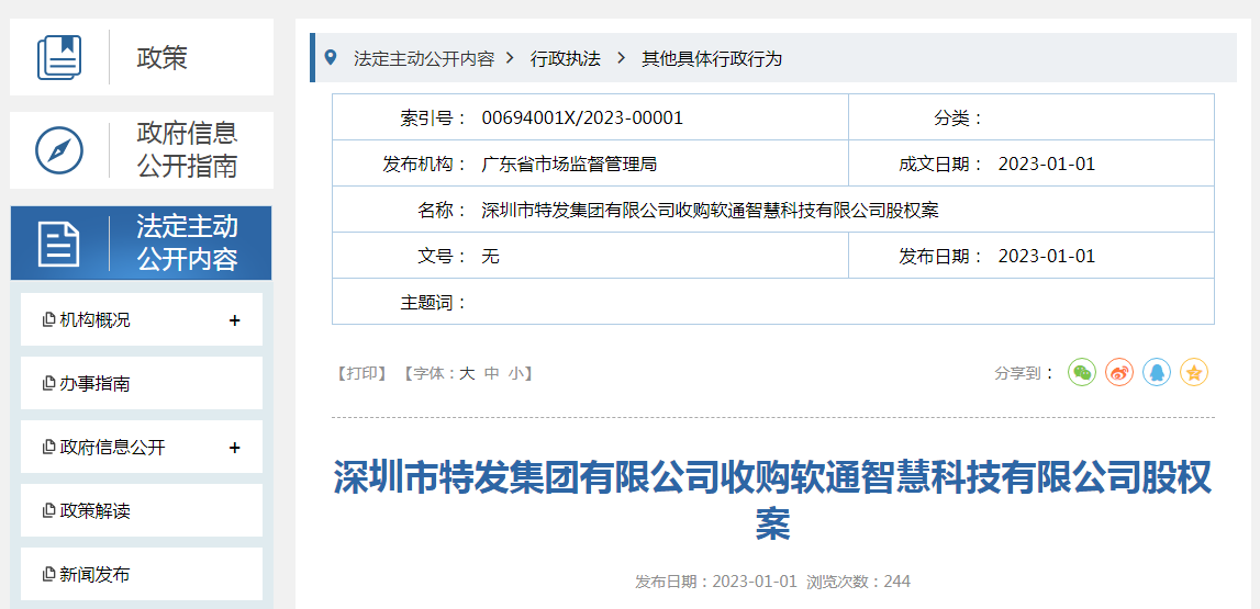 深圳市特發(fā)集團(tuán)有限公司收購軟通智慧科技有限公司股權(quán)案.docx