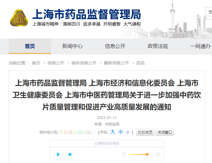 各中藥飲片生產(chǎn)企業(yè),各市級(jí)醫(yī)療機(jī)構(gòu),上海中藥行業(yè)協(xié)會(huì),各區(qū)市場(chǎng)監(jiān)管局、臨港新片區(qū)市場(chǎng)監(jiān)管局,各區(qū)衛(wèi)生健康委、各區(qū)生物醫(yī)藥產(chǎn)業(yè)主管部門,市藥品監(jiān)管局稽查局、藥品審評(píng)核查中心、食品藥品檢驗(yàn)研究院: