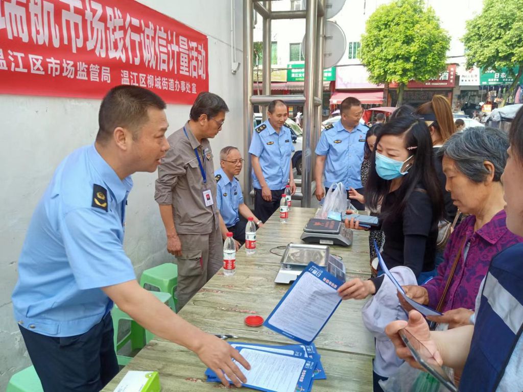5?20世界計量日前夕,溫江區(qū)市場監(jiān)管局聯(lián)合鎮(zhèn)(街道)在瑞航市場、白馬廟臨時市場、公平惠民大市場、天鄉(xiāng)市場、花樣年花樣城5期市場、鳳凰市場、吳家場農(nóng)貿(mào)市場等7大市場開展計量法律法規(guī)宣傳、民生計量知識科普,并接受市民現(xiàn)場咨詢答疑及投訴舉報受理。同時,各集貿(mào)市場管理方為切實落實計量管理主體責任,主動向社會公開作出誠信計量承諾,并與市場內(nèi)固定經(jīng)營戶集中簽訂誠信計量承諾書692份,計量宣傳活動參與各方群策群力,以實際行動保障群眾“菜籃子”“米袋子”秤準量足,在全區(qū)掀起了新一輪誠信計量宣傳熱潮。