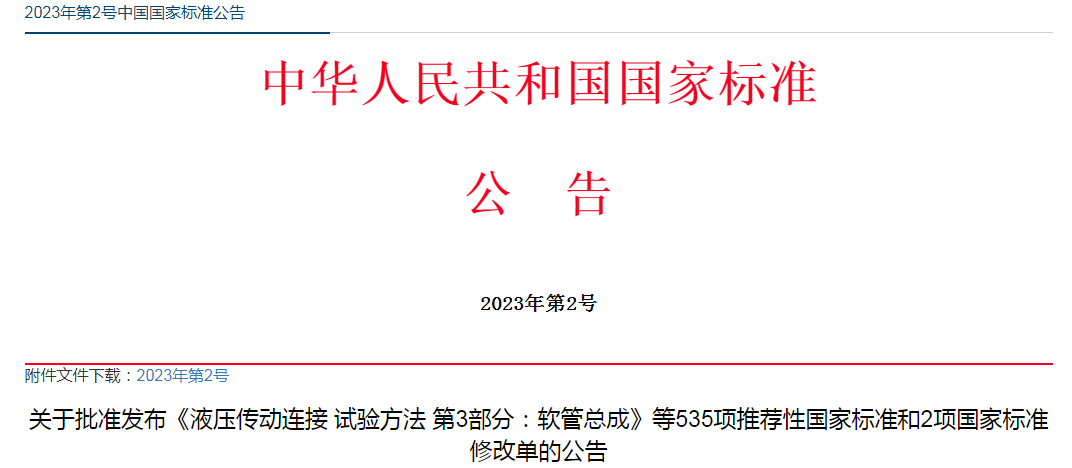 關(guān)于批準(zhǔn)發(fā)布《液壓傳動連接 試驗(yàn)方法 第3部分:軟管總成》等535項(xiàng)推薦性國家標(biāo)準(zhǔn)和2項(xiàng)國家標(biāo)準(zhǔn)修改單的公告