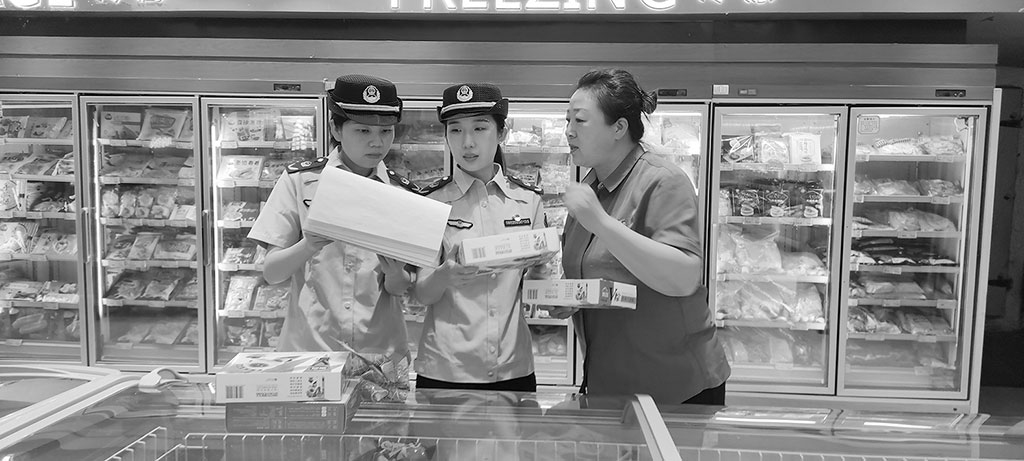 圖為6月15日該局執(zhí)法人員在大型商超檢查節(jié)令食品。崔明太 攝
