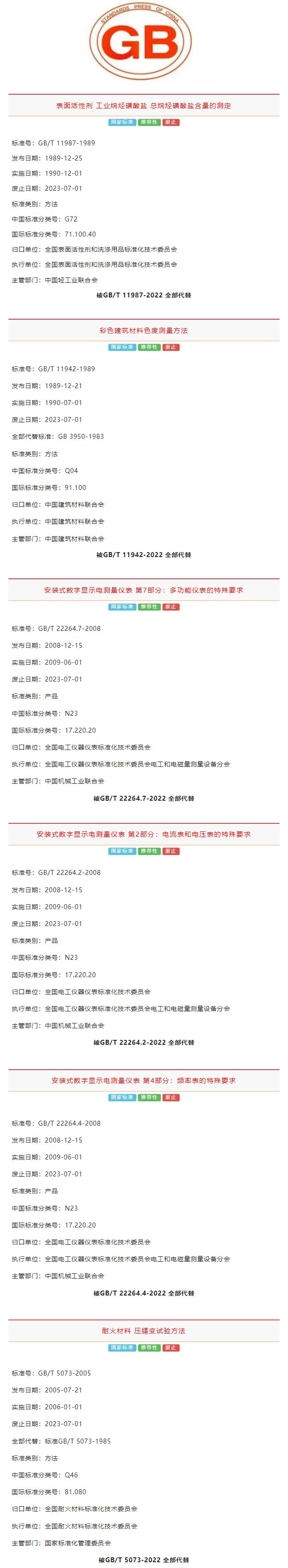 據(jù)全國標準信息公共服務(wù)平臺消息,2023年7月1日起6項推薦性國家標準已廢止。詳情如下:
