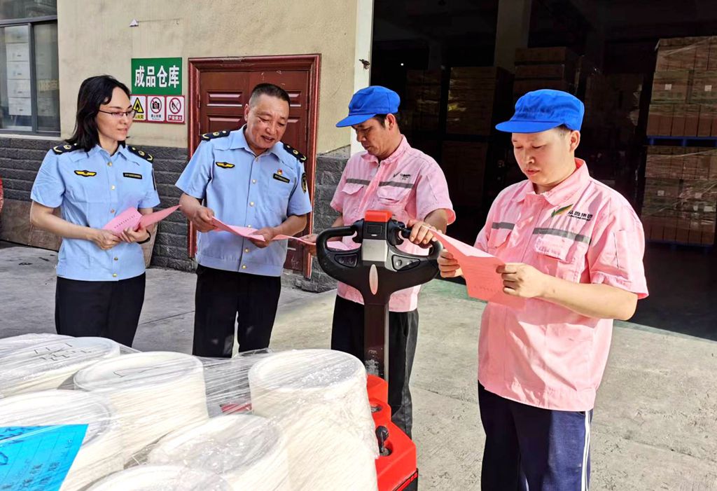 來賓市市場監(jiān)管局工作人員到企業(yè)中開展信用修復宣傳工作。