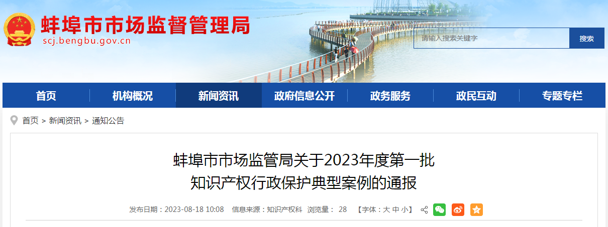 2023年,安徽省蚌埠市各級市場監(jiān)管部門深入貫徹落實(shí)黨中央、國務(wù)院和省、市關(guān)于強(qiáng)化知識產(chǎn)權(quán)保護(hù)工作的決策部署,依法嚴(yán)厲打擊知識產(chǎn)權(quán)侵權(quán)假冒違法行為,先后組織開展專利行政保護(hù),商標(biāo)全鏈條保護(hù),春茶、秋季地理標(biāo)志保護(hù),著力加強(qiáng)知識產(chǎn)權(quán)侵權(quán)案件辦理和指導(dǎo)。截至目前,蚌埠市辦理專利侵權(quán)糾紛案件36件,假冒專利案件12件,商標(biāo)違法案件84件,知識產(chǎn)權(quán)保護(hù)力度不斷加強(qiáng)。蚌埠市市場監(jiān)管局在全市市場監(jiān)管系統(tǒng)內(nèi)征集和評選了一批典型案例,現(xiàn)公布如下: