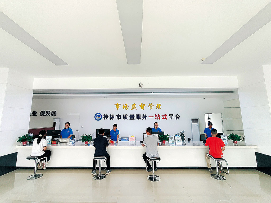 “一”是建立一套制度,有序推進(jìn)平臺(tái)一體化建設(shè)。在學(xué)習(xí)先進(jìn)地市經(jīng)驗(yàn)的基礎(chǔ)上,桂林市精心編制《質(zhì)量服務(wù)“一站式”平臺(tái)建設(shè)規(guī)范》等相關(guān)制度,完善平臺(tái)服務(wù)管理體系,提升工作站建設(shè)和服務(wù)標(biāo)準(zhǔn)化水平。目前已完成市、縣兩級(jí)線下站點(diǎn)的升級(jí)改造,線上平臺(tái)的完善提升也在有序進(jìn)行中。下一步,該市將依托升級(jí)后的線上平臺(tái)打造多維質(zhì)量服務(wù)綜合體,全面實(shí)現(xiàn)各類質(zhì)量服務(wù)“一窗口”辦理。