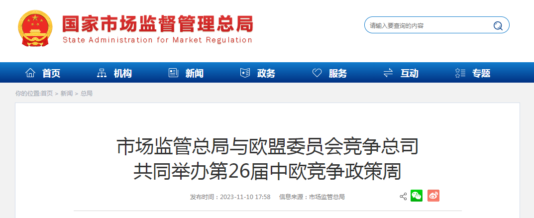 近日,市場監(jiān)管總局與歐盟委員會競爭總司共同以線上線下相結(jié)合方式舉辦第26屆中歐競爭政策周。雙方圍繞縱向經(jīng)營者集中審查方法、國家援助和公平競爭審查制度等議題進行了深入討論。雙方表示,將進一步深化反壟斷領(lǐng)域交流合作,維護公平競爭秩序,促進雙方經(jīng)貿(mào)關(guān)系持續(xù)發(fā)展。