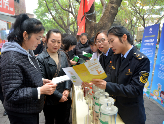 涪陵區(qū)市場監(jiān)管局工作人員向群眾普及安全用藥知識