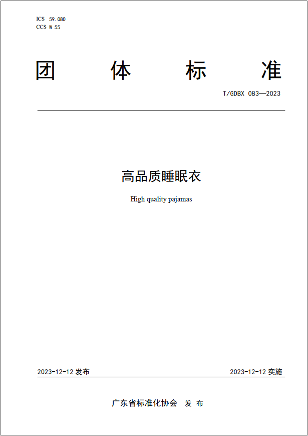 為規(guī)范高品質(zhì)睡眠衣產(chǎn)業(yè)的健康發(fā)展,愛慕股份有限公司、廣州檢驗檢測認(rèn)證集團(tuán)有限公司、中國流行色協(xié)會、全國衛(wèi)生產(chǎn)業(yè)企業(yè)管理協(xié)會睡眠產(chǎn)業(yè)分會等單位聯(lián)合組成編寫組,進(jìn)行了廣泛的調(diào)查研究,做了許多測試并進(jìn)行了對比驗證試驗,在此基礎(chǔ)上,起草編制了《高品質(zhì)睡眠衣》團(tuán)體標(biāo)準(zhǔn)。