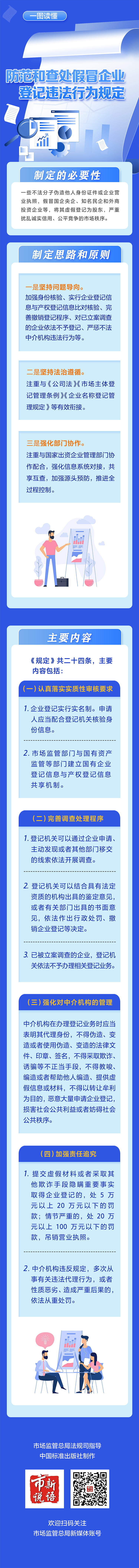 為有效防范和查處假冒企業(yè)登記違法行為,破解企業(yè)被冒名登記難題,強(qiáng)化對提交虛假材料責(zé)任人的懲戒,加快構(gòu)建誠信守法的市場秩序,持續(xù)優(yōu)化營商環(huán)境,營造推進(jìn)經(jīng)濟(jì)高質(zhì)量發(fā)展的法治環(huán)境,市場監(jiān)管總局近日發(fā)布《防范和查處假冒企業(yè)登記違法行為規(guī)定》(以下簡稱《規(guī)定》),將于2024年3月15日起正式實(shí)施執(zhí)行。