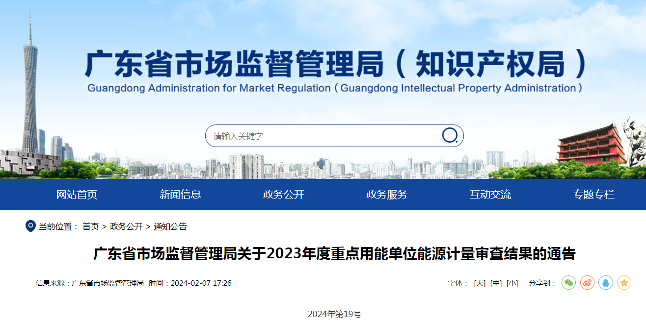 廣東省市場(chǎng)監(jiān)督管理局關(guān)于2023年度重點(diǎn)用能單位能源計(jì)量審查結(jié)果的通告