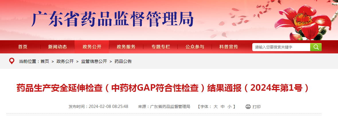藥品生產(chǎn)安全延伸檢查(中藥材GAP符合性檢查)結(jié)果通報(2024年第1號)
