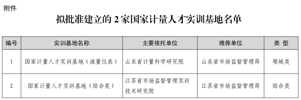 附件:擬批準(zhǔn)建立的2家國家計量人才實訓(xùn)基地名單