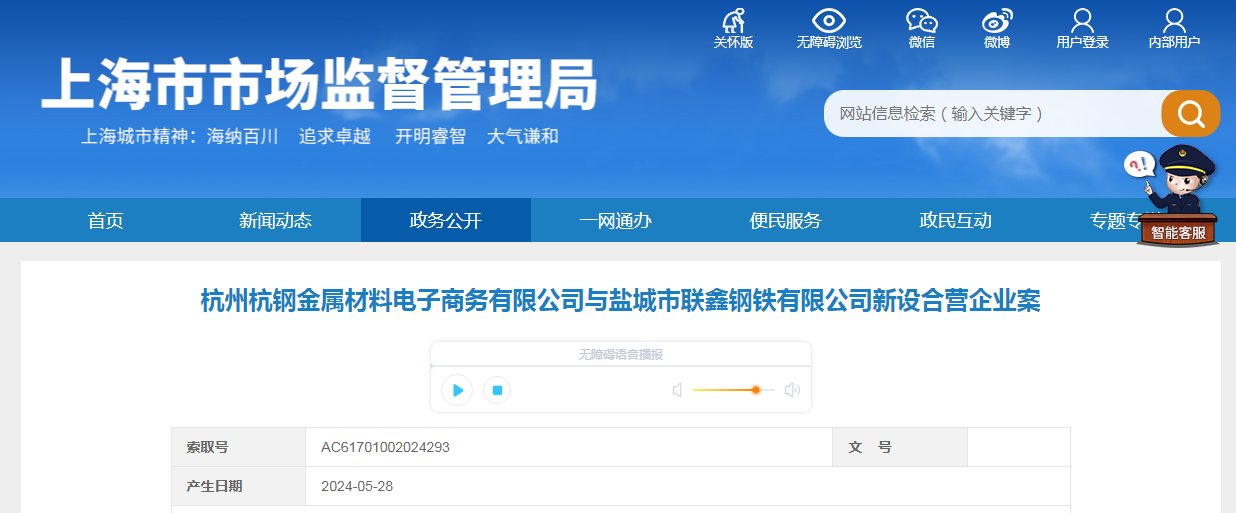 杭州杭鋼金屬材料電子商務(wù)有限公司與鹽城市聯(lián)鑫鋼鐵有限公司新設(shè)合營(yíng)企業(yè)案.docx
