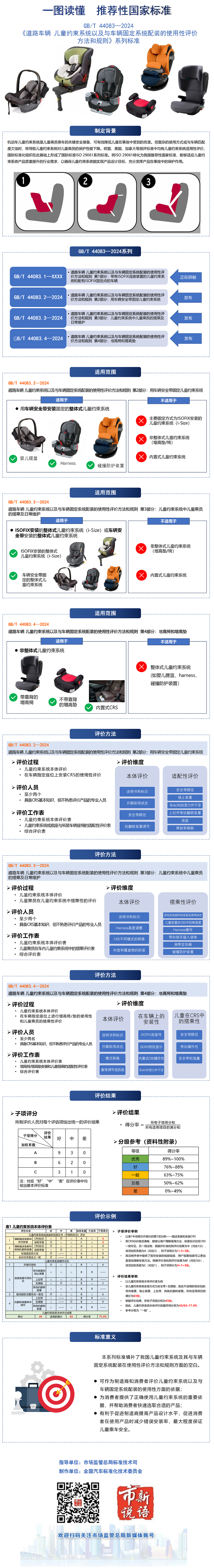 一圖讀懂 | 推薦性國家標準GB/T 44083—2024《道路車輛 兒童約束系統(tǒng)以及與車輛固定系統(tǒng)配裝的使用性評價方法和規(guī)則》系列標準