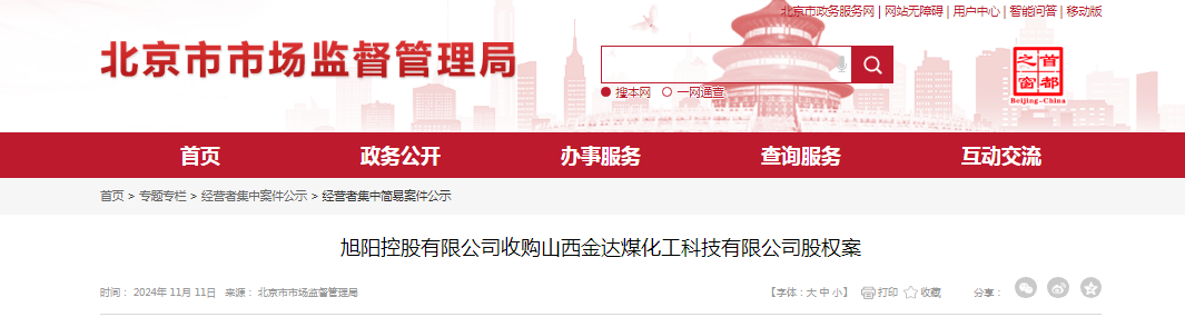 旭陽控股有限公司收購山西金達(dá)煤化工科技有限公司股權(quán)案