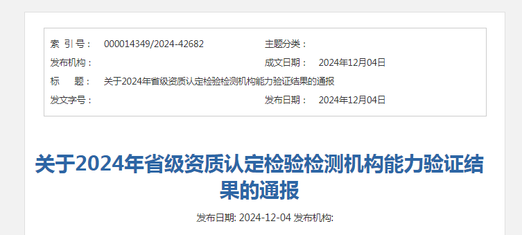 關于2024年省級資質(zhì)認定檢驗檢測機構能力驗證結(jié)果的通報