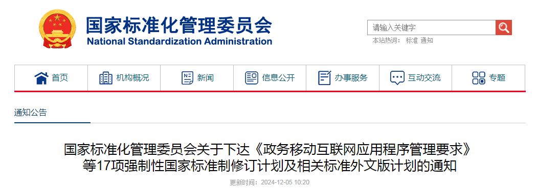 國家標(biāo)準(zhǔn)化管理委員會關(guān)于下達(dá)《政務(wù)移動互聯(lián)網(wǎng)應(yīng)用程序管理要求》
