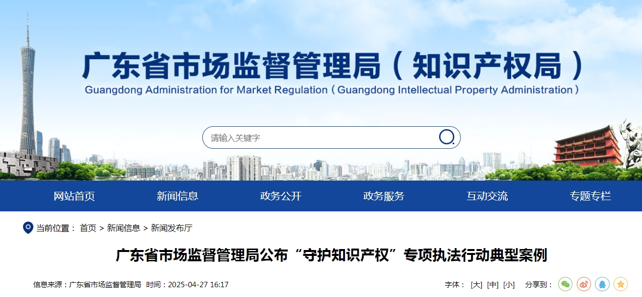 2024年以來,廣東省市場(chǎng)監(jiān)管系統(tǒng)認(rèn)真落實(shí)市場(chǎng)監(jiān)管總局、國(guó)家知識(shí)產(chǎn)權(quán)局有關(guān)工作部署和省委、省政府有關(guān)工作要求,不斷深入推進(jìn)“守護(hù)知識(shí)產(chǎn)權(quán)”專項(xiàng)執(zhí)法行動(dòng),突出“守護(hù)品牌”和“守護(hù)地理標(biāo)志促進(jìn)鄉(xiāng)村振興”兩個(gè)主題,持續(xù)強(qiáng)化知識(shí)產(chǎn)權(quán)執(zhí)法力度,依法查處了一批典型知識(shí)產(chǎn)權(quán)違法案件,有力地保護(hù)了權(quán)利人和消費(fèi)者合法權(quán)益。為加強(qiáng)社會(huì)監(jiān)督,充分發(fā)揮警示震懾作用,現(xiàn)對(duì)外公布一批知識(shí)產(chǎn)權(quán)執(zhí)法典型案件。