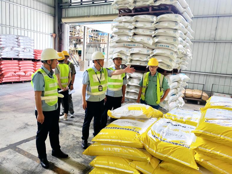 執(zhí)法人員檢查廣西桂林市靈川縣一家飼料生產(chǎn)企業(yè)(圖:梁曉珊)