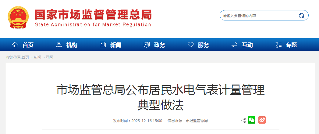 近日,市場監(jiān)管總局在全國組織征集并選出10項居民水電氣表計量管理典型做法,正式對外公布。此舉旨在通過總結(jié)推廣基層創(chuàng)新經(jīng)驗,扎實推進(jìn)居民水電氣計量問題綜合整治,切實解決群眾關(guān)切。