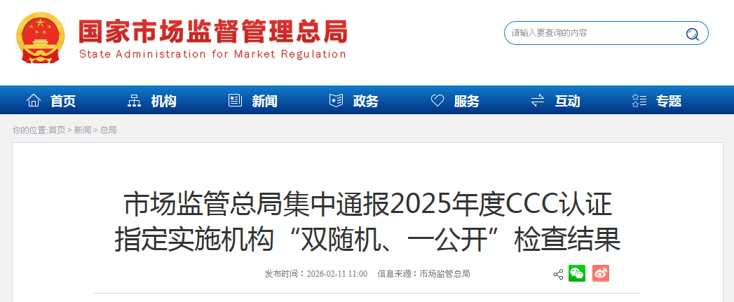 近日,市場(chǎng)監(jiān)管總局向CCC指定認(rèn)證機(jī)構(gòu)和實(shí)驗(yàn)室集中通報(bào)2025年度CCC認(rèn)證指定實(shí)施機(jī)構(gòu)“雙隨機(jī)、一公開”檢查結(jié)果。