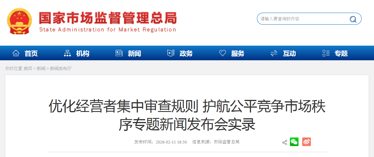 2月11日上午,市場監(jiān)管總局召開優(yōu)化經營者集中審查規(guī)則,護航公平競爭市場秩序專題新聞發(fā)布會。以下為發(fā)布會文字實錄: