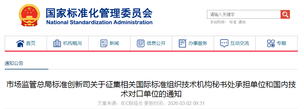 市場監(jiān)管總局標準創(chuàng)新司關于征集相關國際標準組織技術機構秘書處承擔單位和國內技術對口單位的通知