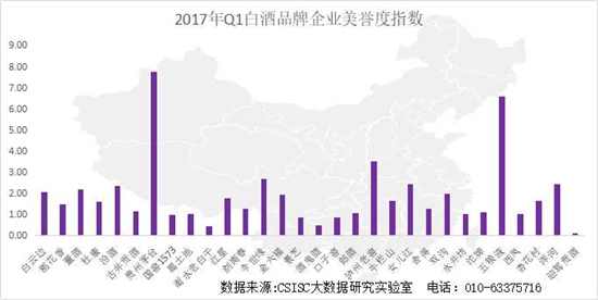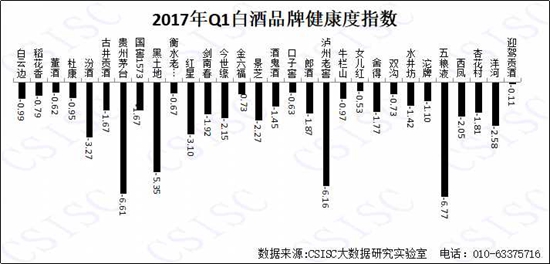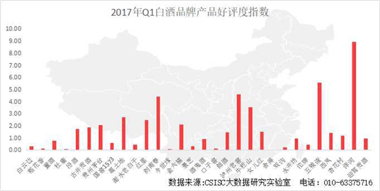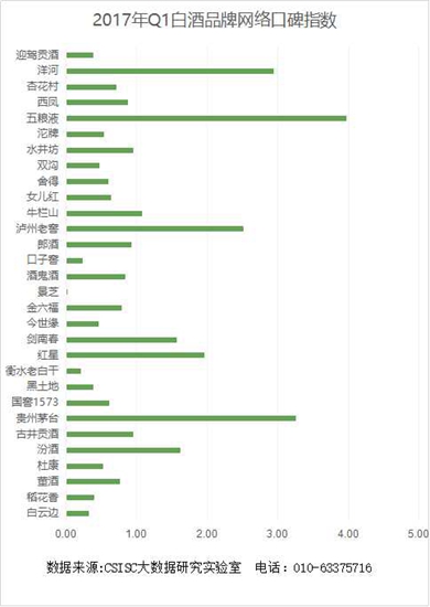 基于中國統(tǒng)計信息服務中心與首頁大數據共同研發(fā)的品牌口碑大數據采集系統(tǒng),經過數據處理分析,2017年第一季度白酒品牌網絡口碑指數研究中,五糧液、貴州茅臺和洋河等品牌表現優(yōu)異,引領口碑榜單;瀘州老窖品牌口碑也比較穩(wěn)定,紅星、汾酒、劍南春、牛欄山等也處于口碑榜單前列,排名較高的品牌口碑較為穩(wěn)定,之后的品牌次序存在波動??诒偁帾q如逆水行舟,各品牌需不斷加強自身的口碑建設。