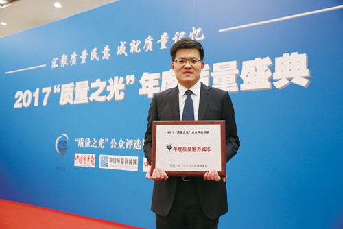一直以來,諸城市始終堅持質(zhì)量立市、質(zhì)量興市、質(zhì)量強(qiáng)市的創(chuàng)新發(fā)展之路,秉承“經(jīng)濟(jì)發(fā)展、質(zhì)量優(yōu)先、精益求精、追求卓越”的城市質(zhì)量精神,城市發(fā)展質(zhì)量與效益持續(xù)提升,被評為汽車產(chǎn)業(yè)全國知名品牌創(chuàng)建示范區(qū)、中國男裝名城、全國食品工業(yè)強(qiáng)市、全國農(nóng)業(yè)標(biāo)準(zhǔn)化示范縣、國家火炬山東諸城汽車及零部件特色產(chǎn)業(yè)基地,實現(xiàn)了在產(chǎn)業(yè)轉(zhuǎn)型中率先突圍,在區(qū)域競爭中率先發(fā)展,在全面建成更高水平小康社會進(jìn)程中走在了前列。站在這新的歷史起點,諸城市將把榮譽轉(zhuǎn)化為動力,將信任轉(zhuǎn)化為干勁,深入落實黨的十九大精神,努力打造創(chuàng)新創(chuàng)業(yè)引領(lǐng)區(qū)、生態(tài)宜居示范區(qū)、幸福和諧樣板區(qū)和山東半島區(qū)域性中心城市,讓中國龍城綻放出更加絢麗的質(zhì)量魅力,讓舜帝故里迸發(fā)出更具創(chuàng)新的城市活力。