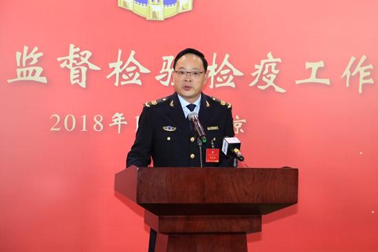 1月9日,2018年全國質(zhì)量監(jiān)督檢驗檢疫工作會議在北京召開。為了創(chuàng)新宣傳形式,回應民眾關切,本次會議新設“司局長通道”。圖為廣東出入境檢驗檢疫局局長、黨組書記施宗偉接受記者采訪。