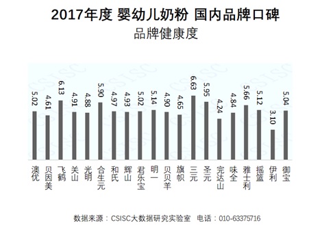中國質(zhì)量新聞網(wǎng)訊 CSISC大數(shù)據(jù)研究實(shí)驗(yàn)室基于國統(tǒng)?首頁HOMEBA平臺(tái)數(shù)據(jù)和大數(shù)據(jù)技術(shù)手段,以第三方視角,從國內(nèi)嬰幼兒奶粉品牌市場中篩選出20個(gè)表現(xiàn)比較突出的國內(nèi)品牌作為研究對(duì)象,包括:澳優(yōu)、貝因美、飛鶴、關(guān)山、光明、合生元、和氏、輝山、君樂寶、明一、貝貝羊、旗幟、三元、圣元、完達(dá)山、味全、雅士利、搖籃、伊利、御寶(以字母順序名次),綜合運(yùn)用網(wǎng)媒、電商、論壇等網(wǎng)絡(luò)數(shù)據(jù),通過品牌知名度、企業(yè)美譽(yù)度、品牌健康度、質(zhì)量認(rèn)可度、產(chǎn)品好評(píng)度、消費(fèi)者互動(dòng)度等六個(gè)維度對(duì)這20個(gè)嬰幼兒奶粉國內(nèi)品牌進(jìn)行了品牌口碑指數(shù)評(píng)價(jià),形成了《2017年度嬰幼兒奶粉國內(nèi)品牌口碑研究報(bào)告》(以下簡稱“報(bào)告”)