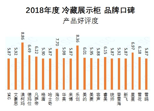 產(chǎn)品好評度方面,澳柯瑪、樂創(chuàng)、海爾,此3個品牌在產(chǎn)品好評度中位居前三。澳柯瑪、樂創(chuàng)、海爾、星星、德瑪仕、美的在近兩期中表現(xiàn)穩(wěn)定,產(chǎn)品好評度位居前十。凡薩帝、雪花、睿美、華美在本期產(chǎn)品好評度中有強(qiáng)勁表現(xiàn),晉升至前十,美菱、SKG、格盾、來博則在本期產(chǎn)品好評度中掉出前十。