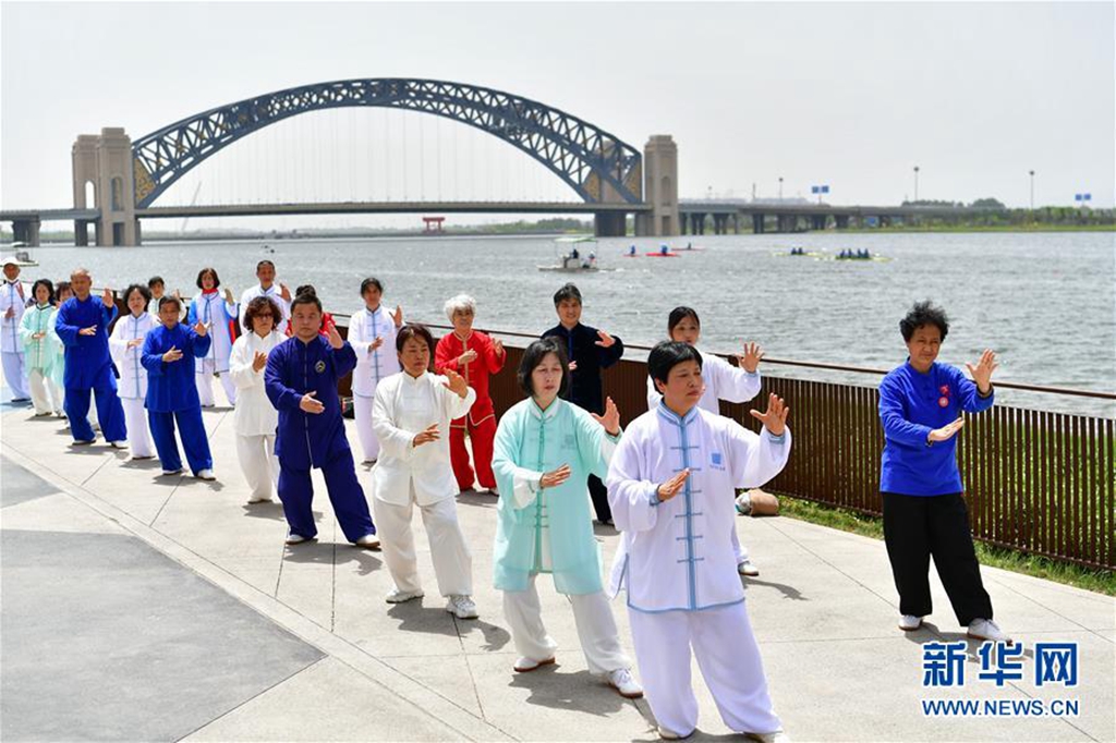 太原市民在汾河太原城區(qū)晉陽(yáng)橋段附近鍛煉身體(5月12日攝)。 新華社記者 曹陽(yáng) 攝